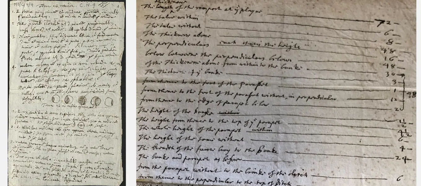 L-R Payne's notes on Copernicus (HS/C/4/4) and Hobbes's notes on fortification (HS/C/7/10)