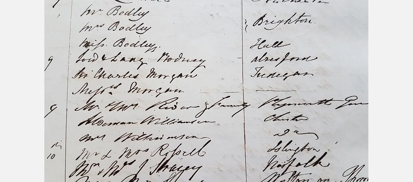 Charles Morgan’s name appears in the visitor book for 9 September 1833.