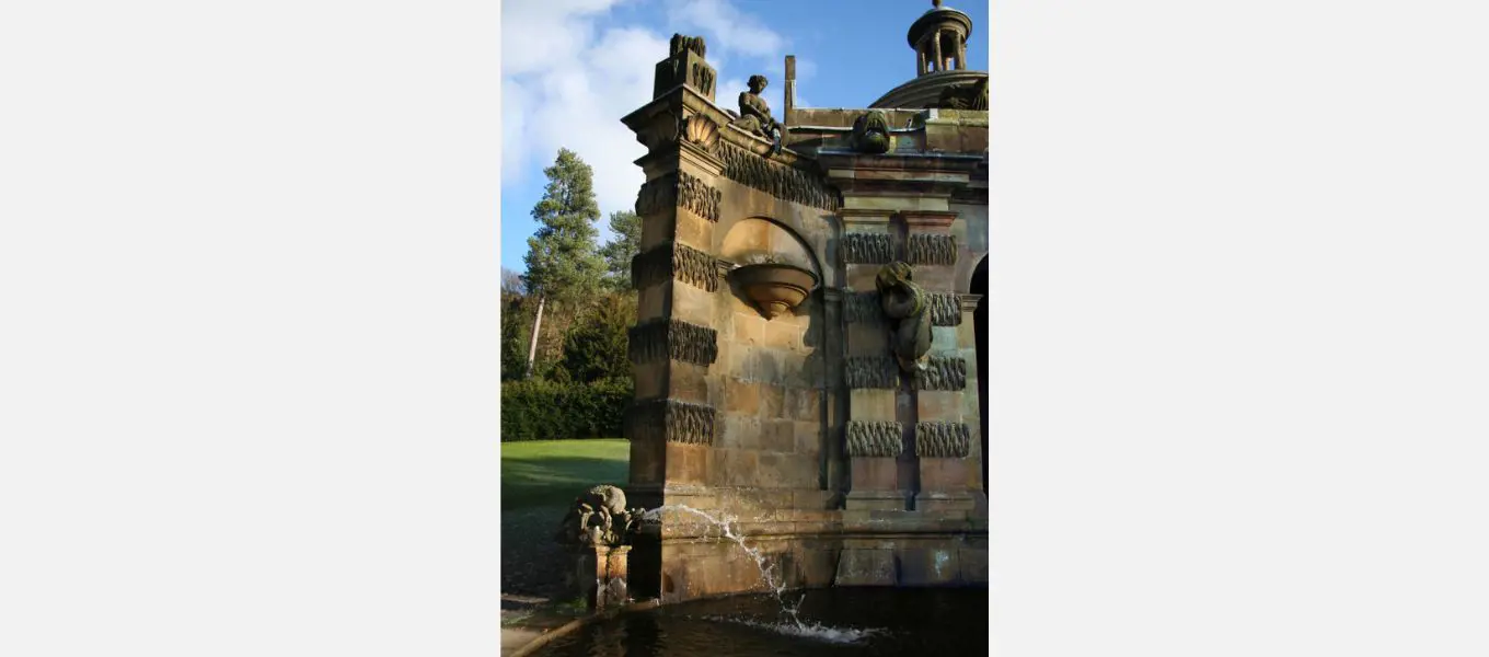 In 1702, the Cascade House, or Temple, was added at the top of the slope. Designed by Thomas Archer and featuring spouts, fountains and carvings by Samuel Watson and Henri Nadauld, the variation and flow of the water could be controlled from the Cascade House continuing the established tradition of water being used to surprise and delight visitors, one of whom in 1725 reported how jets within the building ‘throw up several streams and wett people’ (the spouts in the floor are still there).