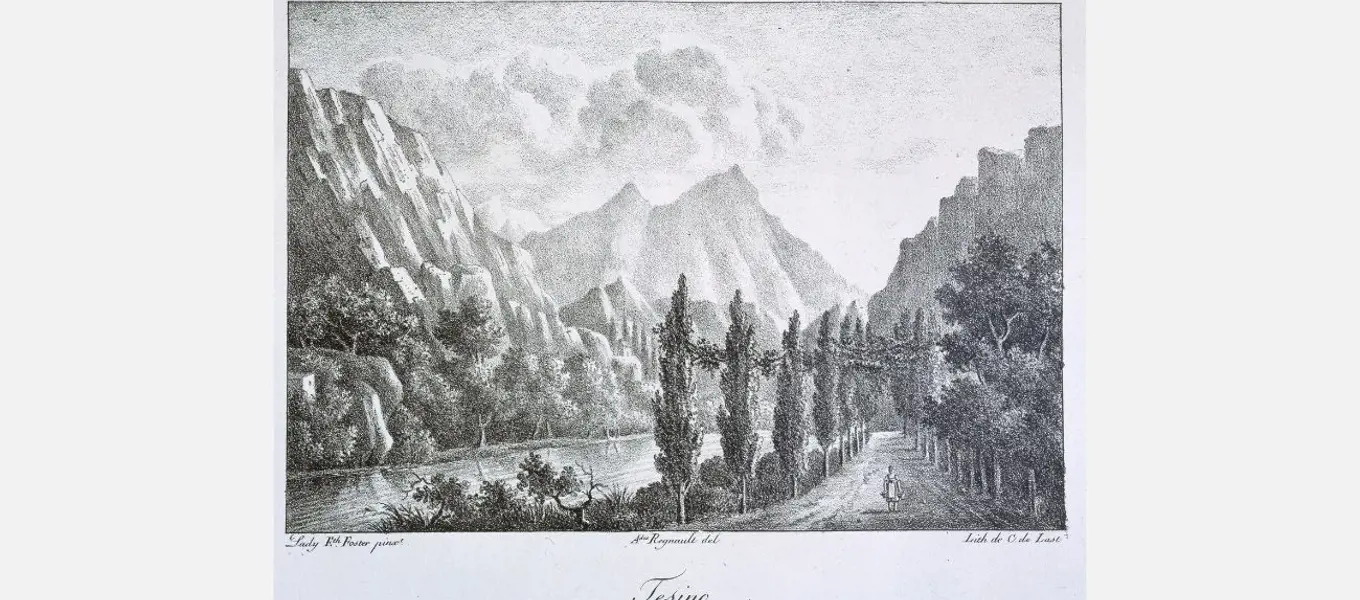 Lithographic plate from 'The Passage of the Mountain of Saint Gothard' drawn by Lady Elizabeth Foster